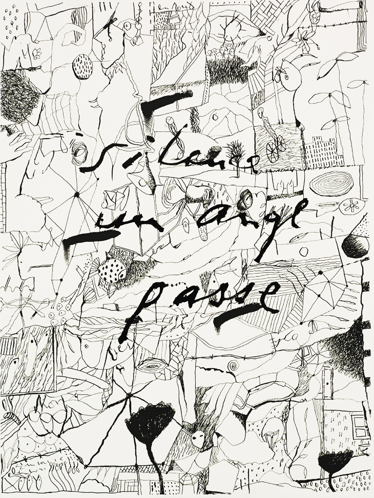 « Silence un ange passe », sérigraphie en 2 couleurs plus verni sélectif sur Rivoli 300g, 76 x 57 cm, tirage : 40 exemplaires, 2025.